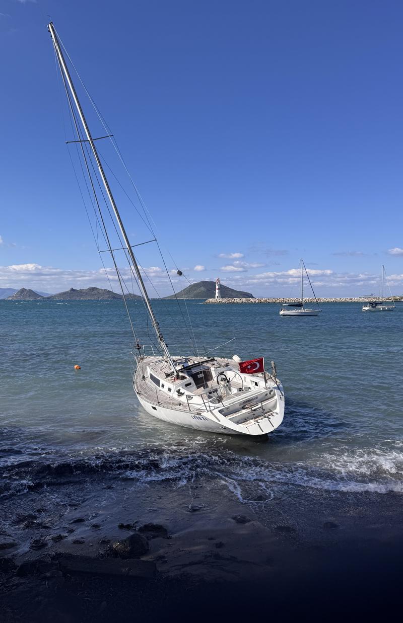 İlçede iki gündür etkili olan fırtına yaşamı olumsuz etkiledi. Turgutreis Mahallesi açıklarında demirli bulunan yaklaşık 15 metrelik yelkenli tekne kıyıya sürüklendi.