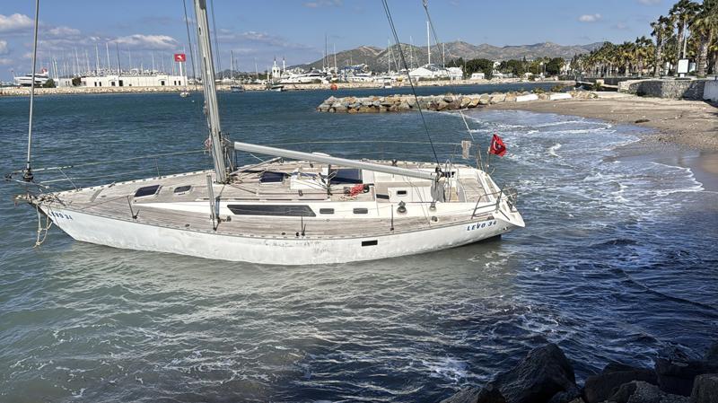 Bodrum'da yelkenli tekne kıyıya sürüklendi