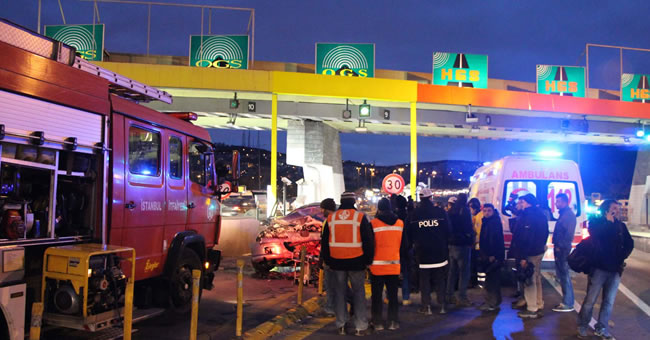 Boğaziçi Köprüsü gişelerinin bariyerlerine çarpan otomobilin sürücüsü hayatını kaybetti.
