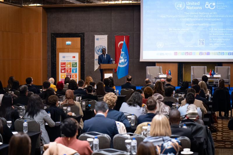 Panelin, bu misyonun bir parçası olduğunu aktaran Ahonsi, "Birlikte, seksen yıl önce başlayan işimizi sürdürüyoruz, geleceğimizi birlikte inşa ediyoruz. BM'nin 80. yıl dönümünü kutlayan bugünkü panel tartışmasını açmak benim için büyük bir onurdur. 'Türkiye'nin BM ve Çok Taraflılığa Desteği Küresel Barış ve Kalkınmayı Nasıl İlerletiyor' başlıklı panelimiz, BM'nin kuruluşunun 80. yıl dönümünü kutlamalarımızın bir parçasıdır." ifadelerini kullandı.