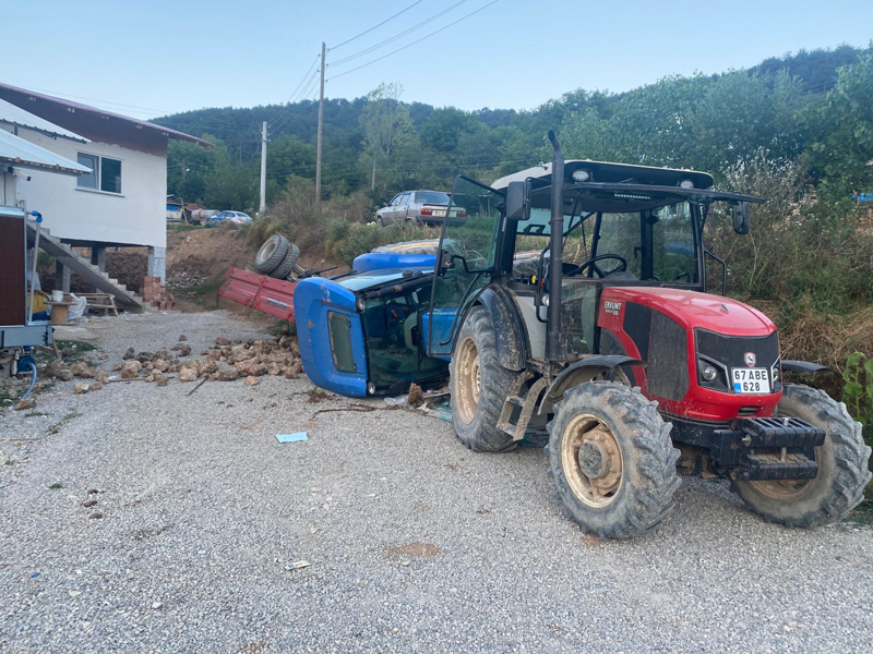 Çatacık köyünde park halinde bulunan 81 FK 298 plakalı traktör, aniden hareket ederek devrildi.