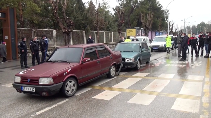 Eşi Ferhat K. de kendi aracıyla bir süre takip ettiği Muhammed K'nin kullandığı otomobili Gazi Caddesi'nde çarparak durdurdu.