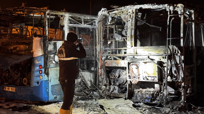 Araç sahiplerinden Erkan Gedik de olay yerine geldiğinde otobüsünün yandığını gördüğünü, ekiplerin yangının nedenini araştırdığını kaydetti.