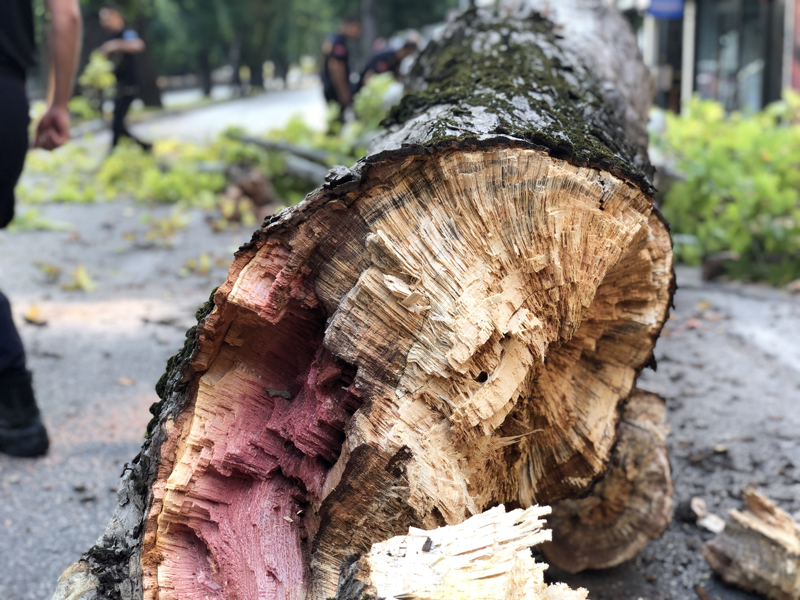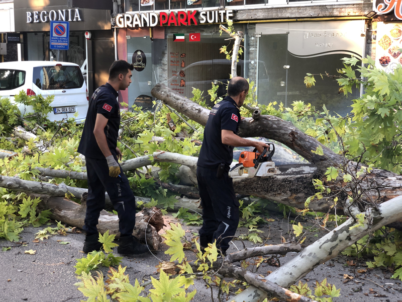 Polis ekipleri çevre güvenliğini alırken, itfaiye ekipleri de ağacı yoldan kaldırmak için çalışma başlattı.