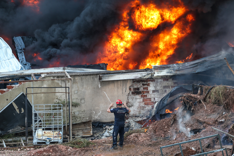 Çelebi Mehmet Mahallesi'nde kağıt üretimi yaptığı belirtilen fabrika ve yanındaki geri dönüşüm tesisinde, henüz belirlenemeyen nedenle yangın çıktı.