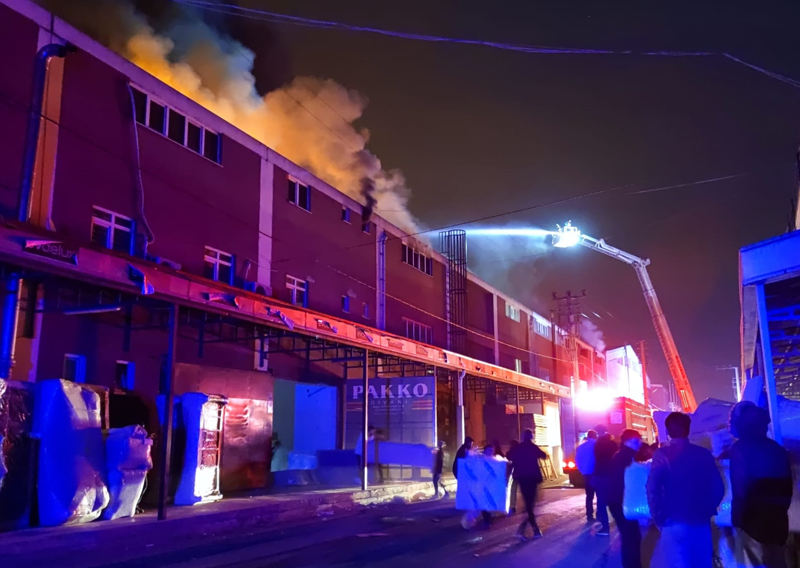 Mahmudiye Mahallesi Semiz Sokak'ta imalathanede henüz belirlenemeyen nedenle yangın çıktı.