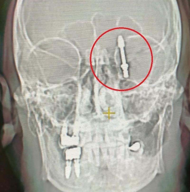 Baygınlık geçiren Yılmaz, kliniğin kendi aracıyla hastaneye kaldırıldı. Tomografi çekiminde vidanın beynine kadar ilerlediği ortaya çıktı. Acil ameliyata alınan talihsiz adam, saatler süren operasyonla ölümden döndü.