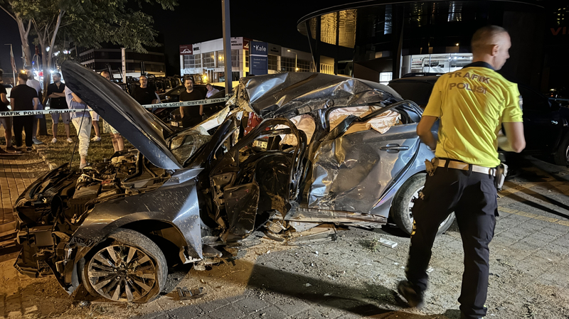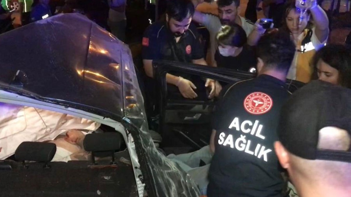 Kazanın şiddetiyle Turna'nın kullandığı otomobil, yol kenarındaki ağaçlara çarpıp taklalar atarak yaklaşık 50 metre sürüklendikten sonra park halindeki 2 araca çarparak durdu.