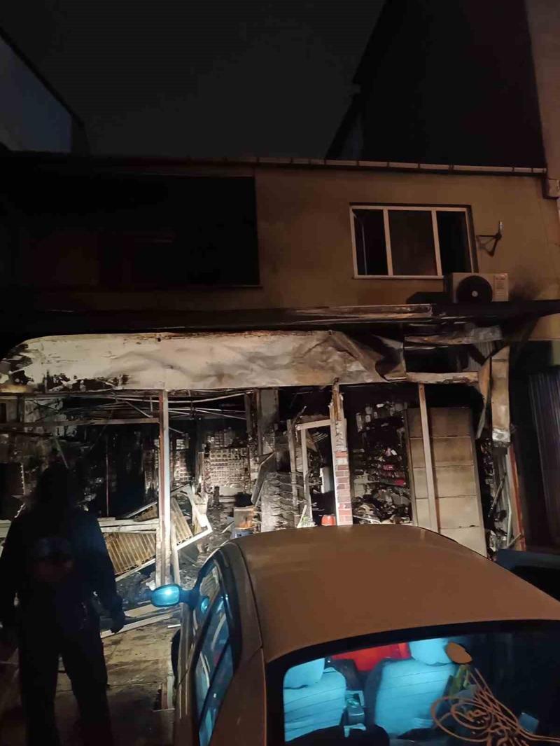 Yangın nedeniyle iş yerinde ve evde hasar oluştu.