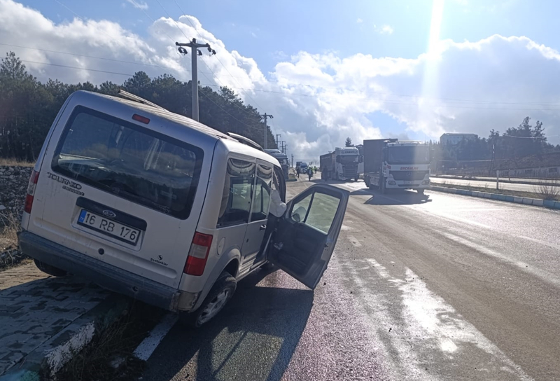 Osman Yanık'ın (65) kullandığı 16 RB 176 plakalı hafif ticari araç, Orhaneli-Harmancık kara yolun Osman U. (55) idaresindeki 16 BLM 519 plakalı tırla çarpıştı. Hafif ticari araç, çarpışmanın etkisiyle kaldırıma savruldu.