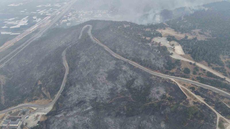 Bursa'da 100 hektardan fazla alanı küle çeviren 3 köyde 485 hanedeki 1765 kişinin tahliye edilmesine sebep olan yangın ekiplerin gece boyunca canlı başla mücadelesi sonrası büyük ölçüde söndürüldü. İğdir ve Narlıdere köylerinde İHA ekiplerinin kaydettiği dron görüntüleri çamla bezeli ormanlık alanın griye döndüğünü gösteriyor.