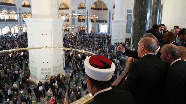 Böylesine muhteşem bir eserin şehre kazandırılmasında emeği geçen mimarından, mühendisinden, işçisine, sanatçısına, hayırseverinden tezhip ve tezyin ustalarına kadar herkese şükranlarını sunan Erdoğan, kentin güzelliğine güzellik katan caminin içinden cemaati, minarelerinden ezanı, kubbesinden Kur'an nidalarını kıyamete kadar eksik etmesin diye Allah'a dua ettiğini söyledi.