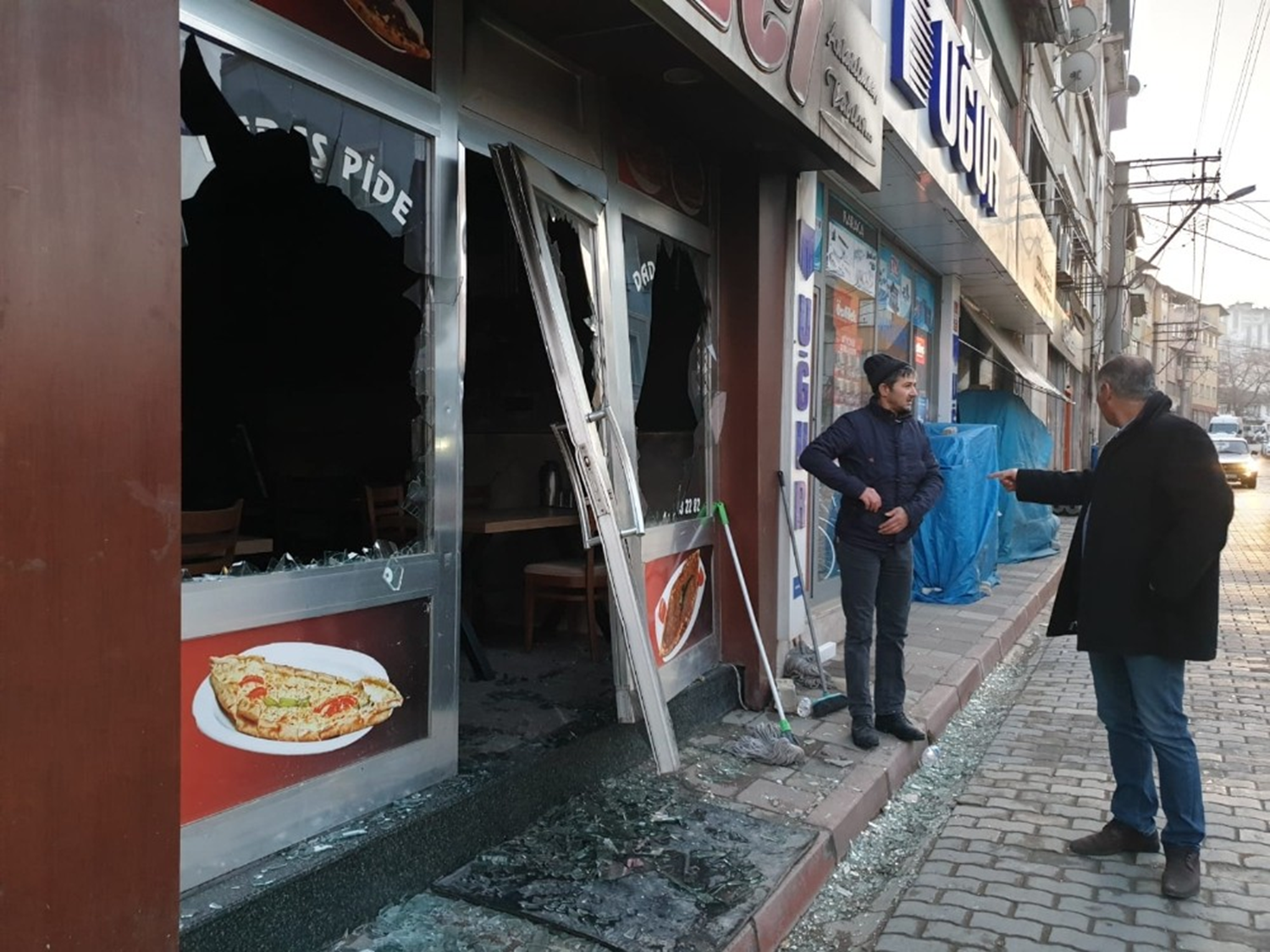 Orhaneli ilçesinde bir pide salonunda 03.00 sıralarında büyük gürültü yaşandı. Gece, dükkanda bilinmeyen bir sebepten dolayı yangın çıktı. Yangının büyümesiyle birlikte buzdolabı bomba gibi patladı. İtfaiye ekipleri, ihbar üzerine olay yerine gelerek kısa sürede alevlere müdahale ederek, söndürdü.
