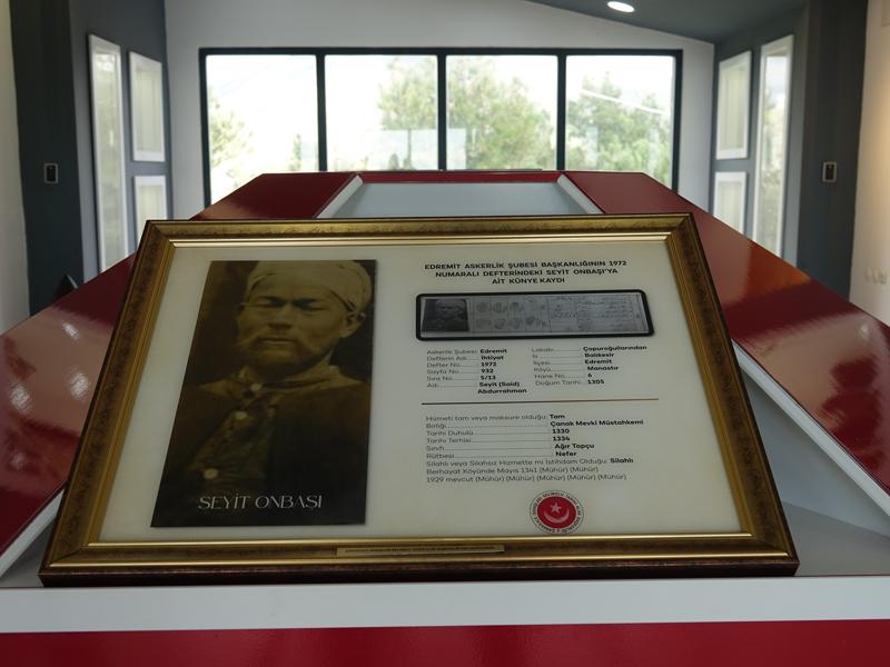 Bu çalışmalar esnasında Seyit Onbaşı'nın askerlik şubesine kaydındaki belgeye ulaştıklarını belirten Kaşdemir, "Seyit Onbaşı Türk ordusuna mensup olduğu anda, askere alındığı anda devletimiz onu nasıl kaydetmişse, bilgileriyle beraber, fotoğrafıyla beraber o arşiv kaydına ulaştık ve onu da şu anda köyündeki müzeye hediye olarak teslim ettik." dedi.