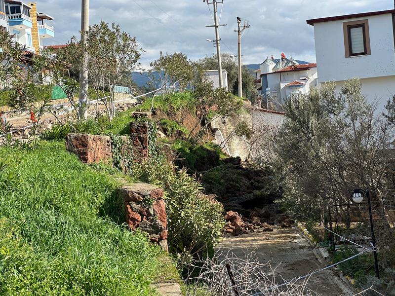 İlçede etkili olan sağanak sonucu Küçükkuyu beldesinde bulunan bir sitenin istinat duvarında çökme meydana geldi.