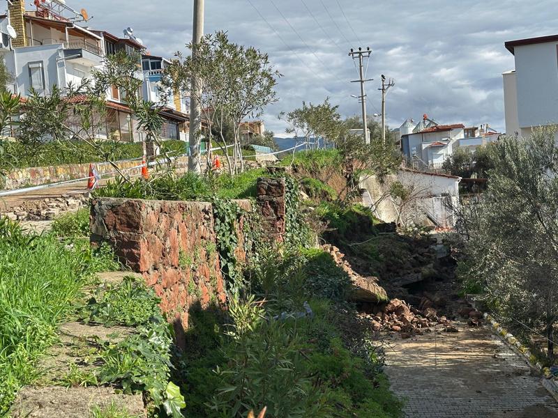 Çöken duvarın çevresinde güvenlik önlemi alındı.