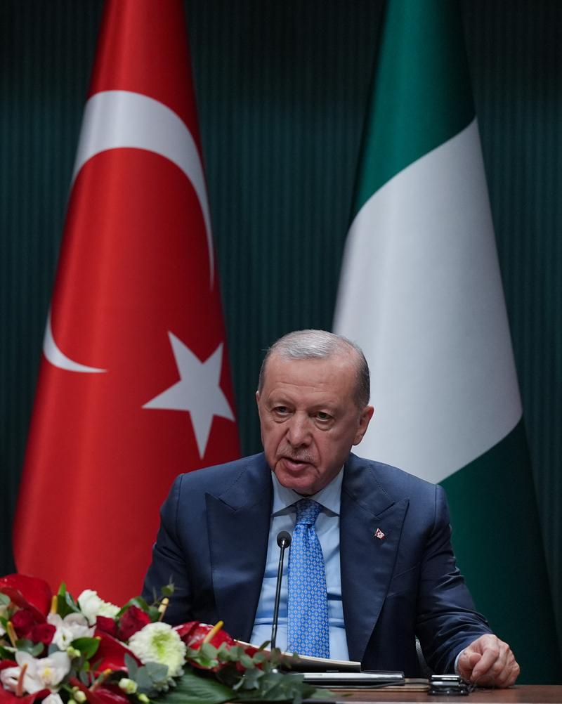 "Nijerya, aynı zamanda İslam İşbirliği Teşkilatı ve D-8 bünyesinde Filistin başta olmak üzere İslam dünyasını ilgilendiren birçok konuda yakın işbirliği halinde olduğumuz stratejik önemde bir ülkedir. Sayın Cumhurbaşkanı ve kıymetli heyetiyle ticaret, yatırımlar, enerji, eğitim ve savunma sanayisi alanlarındaki ilişkilerimizi bugün etraflıca değerlendirdik. Hatırlayacaksınız, 2021'in ekim ayında Nijerya'ya yaptığım ziyaretle çerçevesini çizdiğimiz işbirliğimizi çok daha ileri taşıyacak kararlar aldık. Bu noktada bizim gibi Nijerya tarafında da güçlü bir siyasi irade ve kararlılık olduğunu memnuniyetle müşahede ediyorum. Sayın Cumhurbaşkanına çok sayıda bakan ve üst düzeyli yetkilinin refakat etmesi, bu siyasi kararlılığın en açık emaresidir."