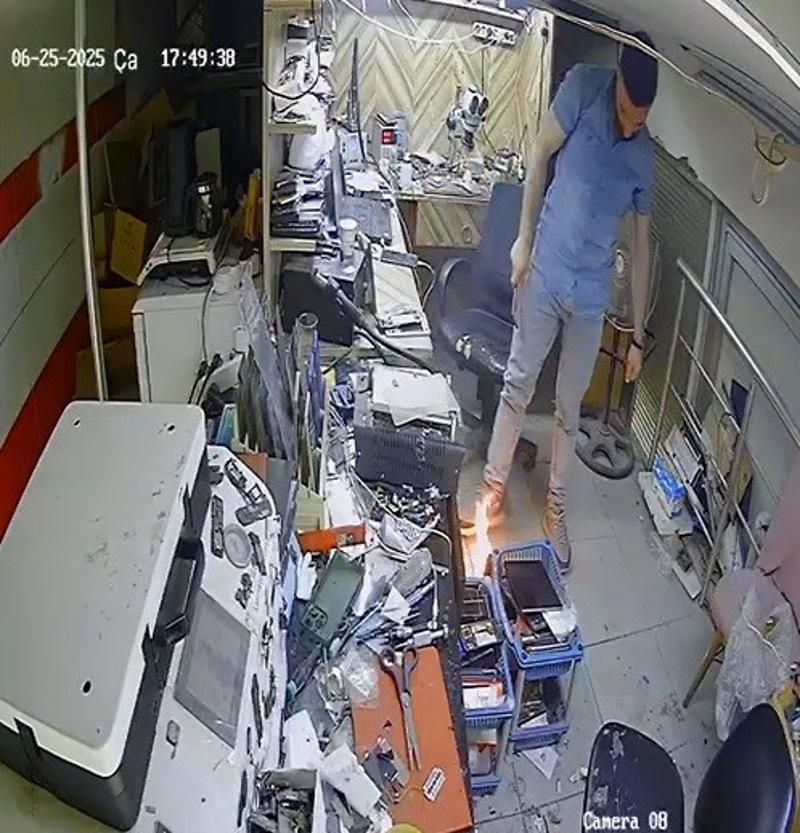 Bataryanın patlamasıyla telefonun alev aldığını fark eden İbrahim, refleksle geri çekilerek yanmaktan kurtuldu. İş yerindeki vatandaşların yaşadığı panik ve patlama anı anbean güvenlik kamerasına yansıdı.