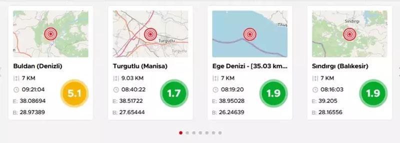 Afet ve Acil Durum Yönetimi Başkanlığının (AFAD) internet sitesinde yer alan bilgiye göre, saat 09.21'de merkez üssü Denizli'nin Buldan ilçesinde 5.1 büyüklüğünde deprem meydana geldi.