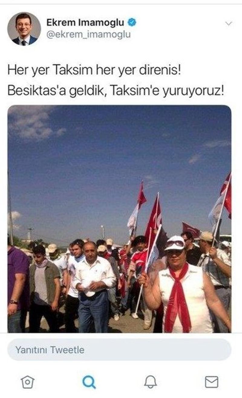 Ekrem İmamoğlu, Gezi Parkı olayları sırasında vatandaşları sosyal medyadan yaptığı paylaşımlarla kalkışmaya çağırmıştı.