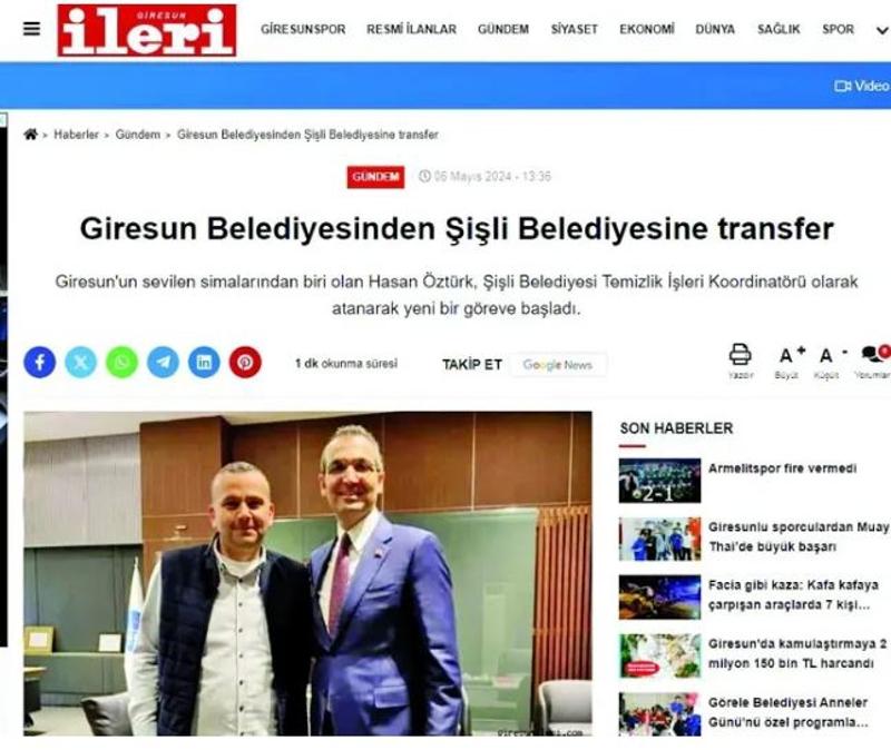 Yerel gazeteler, atama haberini Şişli Belediye Başkanı Resul Emrah Şahan (sağda) ile Hasan Öztürk'ün birlikte fotoğrafları paylaşarak manşete taşıdı.