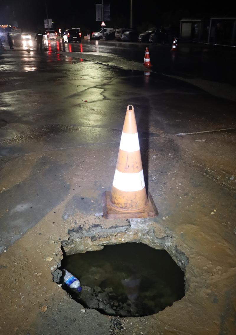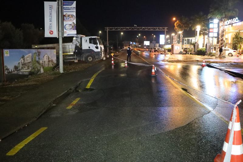 İsale hattındaki su kesilirken, yolun bir şeridi trafiğe kapatıldı ve trafik akışı kontrollü olarak sağlandı.