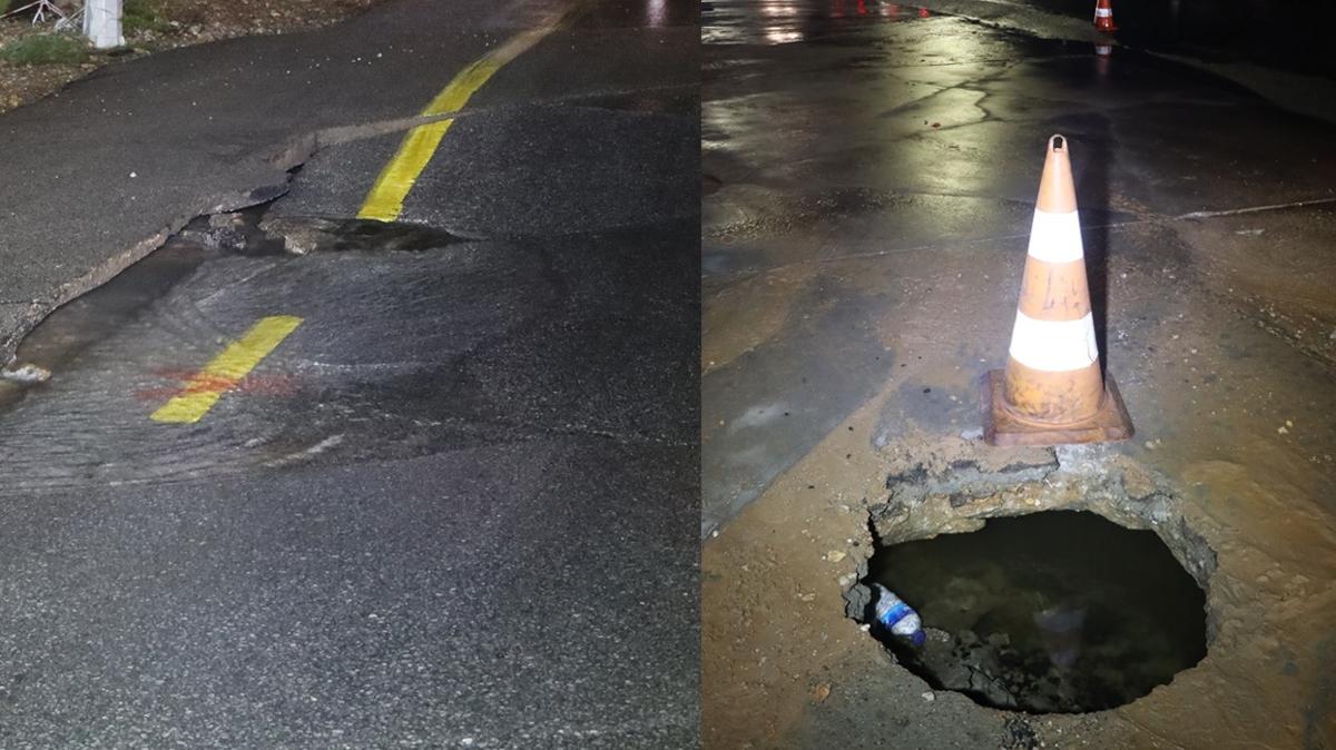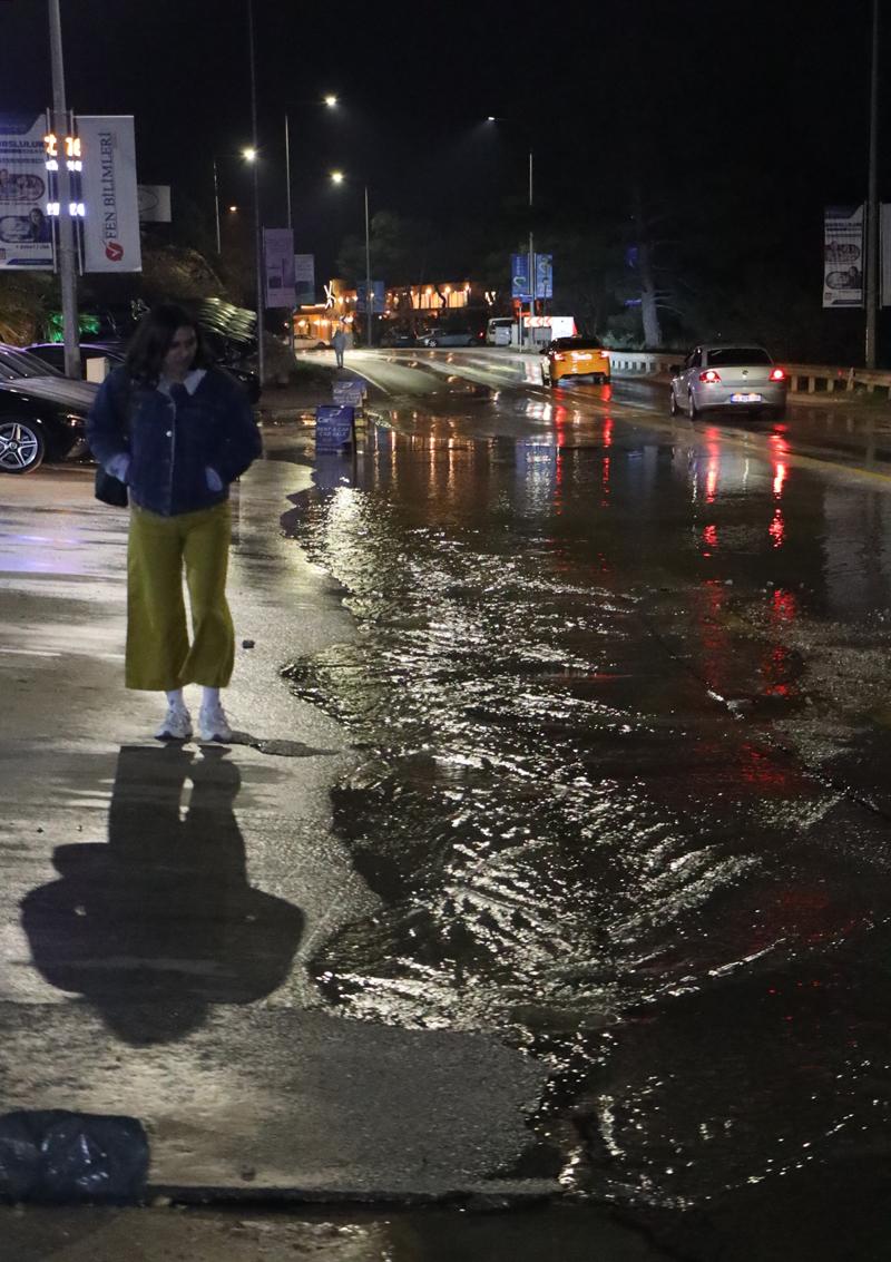 Muğla'nın Bodrum ilçesine ana su isale hattının patlamasıyla yol yarıldı, derin çukurlar oluştu, tonlarca su boşa aktı.
