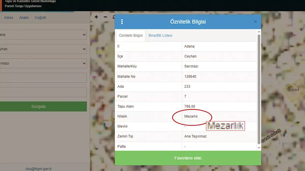 Sayıştay raporunda binanın ada ve parsel bilgileri de yer aldı.