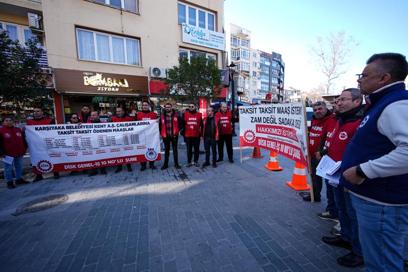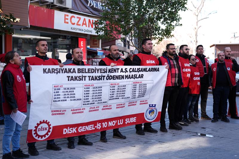 İzmir'in Karşıyaka Belediyesi iştiraki Kent AŞ'de çalışan yaklaşık 540 işçi, maaşlarını düzenli alamadıkları ve görev yerlerinin değiştirilmek istendiği iddiasıyla gösteri yürüyüşü gerçekleştirdi.