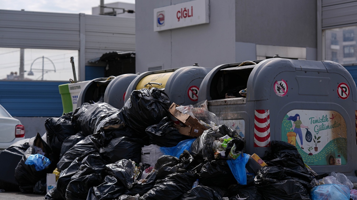 Çöplerin toplanma aralığının uzaması üzerine çöp kutuları doldu, çöpler kutuların etrafına taştı. Çiğli Belediyesinin hizmet binası yakınlarında bulunan çöp kutularında da doluluk nedeniyle vatandaşlar atık poşetlerini yerlere bıraktı.