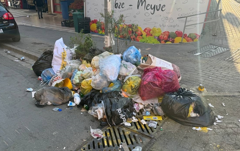 Bu nedenle toplanmayan çöpler sokaklarda, bina önlerinde ve çöp konteynerlerinin etrafında birikti.