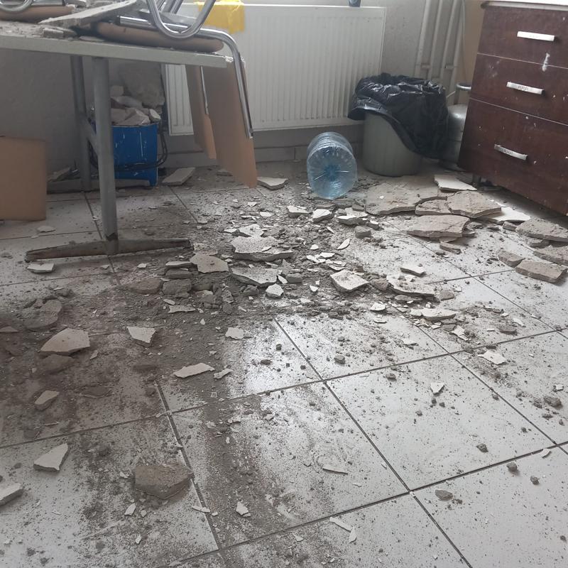 Tavandan düşen sıva parçalarının yaralanmaya sebep olmadığı bildirildi.