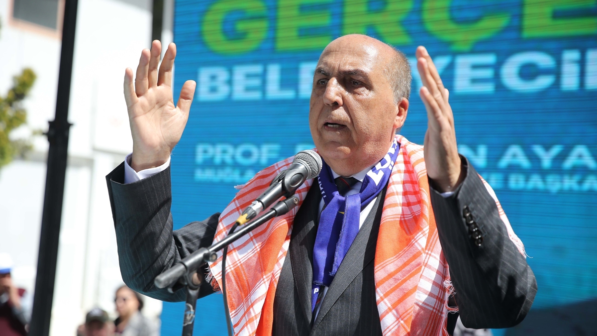 İskele Meydanı'nda düzenlenen "Büyük Bodrum Mitingi'nde" konuşan Ayaydın, kendisi ve Mehmet Tosun'un Bodrum ve Muğla aşkıyla yandığını ifade etti.