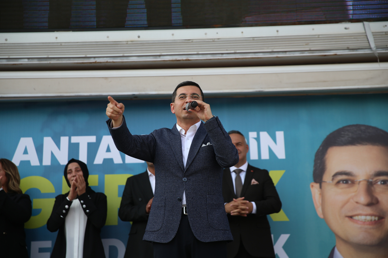 Tütüncü, seçim çalışmaları kapsamında Serik ilçesindeki Çınaraltı Meydanı'nda düzenlenen mitingde halka hitap etti.