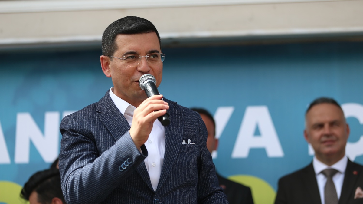 Tütüncü, seçim çalışmaları kapsamında Serik ilçesindeki Çınaraltı Meydanı'nda düzenlenen mitingde halka hitap etti.