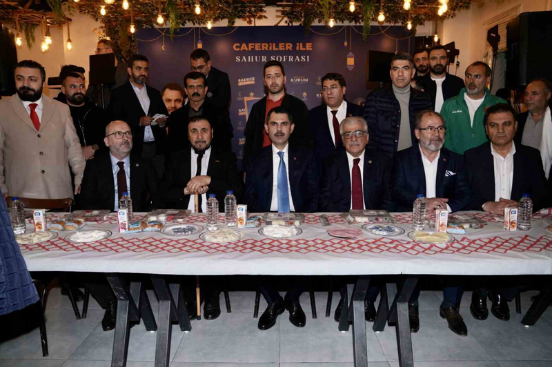 Cumhur İttifakı İstanbul Büyükşehir Belediye Başkan Adayı Murat Kurum, Küçükçekmece'de düzenlenen Caferiler ile Sahur programına katıldı. İstanbul Büyükşehir Belediye Başkan Adayı Murat Kurum'a Cumhur İttifakı Küçükçekmece Belediye Başkan Adayı Aziz Yeniay, TBMM Komisyon Başkanı Cüneyt Yüksel, Caferiler Derneği Başkanı Hasan Babur ve Türkiye Caferiler Lideri Selahattin Özgündüz eşlik etti. Burada bir konuşma yapan Murat Kurum, "Bundan yaklaşık 2 - 2 buçuk ay önce yine burada dostlarımızla, kardeşlerimizle bir araya gelmiştik ve o zaman da kardeşlerimizin taleplerini, bizden beklentilerini tek tek not aldık. Aslında tüm İstanbul'da, kıymetli milletvekillerimizle birlikte 22 yıldır da bu işleri çözmek için gayret gösteriyoruz" ifadelerini kullandı.