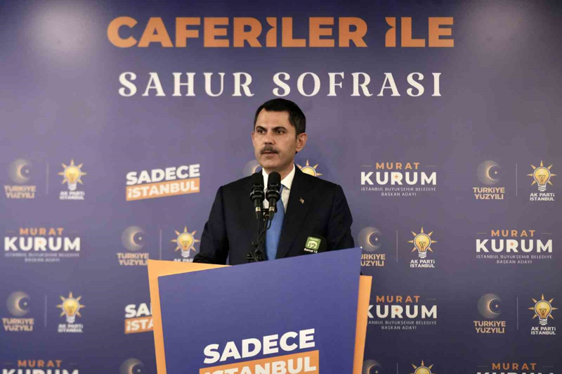 İstanbullu seçmene, 'şehrine oy ver ki; hizmet bulsun' diyerek seslenen Kurum, "Buradan İstanbul'umuzun güzel insanlarına sesleniyorum. 31 Mart'ta gelin, Gerçek Belediyecilikten yana olun. 31 Mart'ta gelin, İstanbul'un geleceğinden yana olun. 31 Mart'ta gelin, sağlam İstanbul'dan yana olun. Her oy bir tohumdur. Hizmet görürse yeşerir, emek verilirse fidan olur, karşılık bulursa orman olur. Haydi İstanbul şehrine oy ver. Şehrine oy ver ki, İstanbul; hizmet bulsun, huzur bulsun, mutluluk bulsun. Sen yaparsın, sen cesursun. Çünkü sen İstanbul'sun. İstanbul'un geleceğine sahip çıkalım. Belediye başkanına ulaşamama, hizmetleri alamama veya bu hizmetleri alamadığından dolayı hiçbir Caferi kardeşimizin boynu öne edilmeyecek. Hep birlikte kazanacağız" diye konuştu.