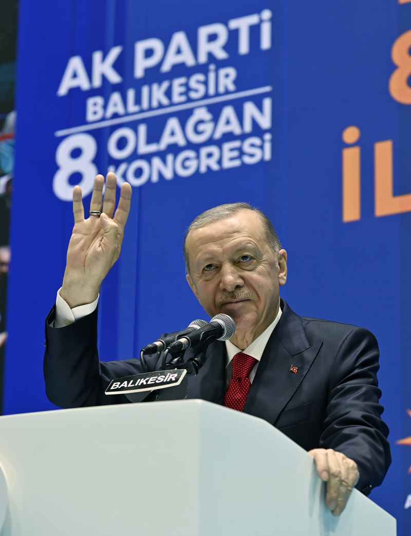 Partisinin 8. Olağan İl Kongresi'nin şehirle birlikte Türkiye, millet ve demokrasi için hayırlara vesile olmasını dileyen Erdoğan, kuruluşundan bugüne kadar AK Parti Balıkesir teşkilatlarında vazife yapanlara şükranlarını sundu, vefat edenlere de Allah'tan rahmet niyaz etti.