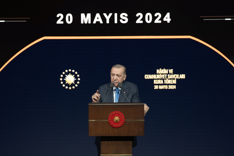 Cumhurbaşkanı Erdoğan, hukuk devleti ilkesinin yaşatılabilmesi için yargının her türlü taassuptan, hizipleşmeden azade tutulmasının şart olduğunu vurgulayarak, "Siyasi ve ideolojik kamplaşmaların adalet sisteminde yol açtığı tahribatları, özellikle tecrübelerimizle çok iyi biliyoruz. Bunların tekrarına izin vermeyeceğiz. Yargımızın tarafsızlığını ve bağımsızlığını koruması ilk ve öncelikli şarttır. Şunu bir kere daha kabul etmemiz lazım. Adalete güveni ne kadar sağlam tesis edersek ekonomi ve demokraside o derece hızlı mesafe alırız." dedi.