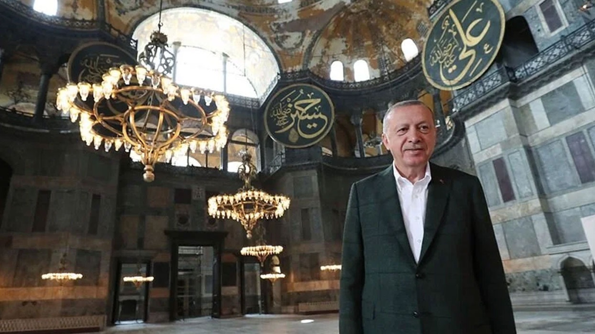 Cumhurbaşkanı Erdoğan, akşam namazını kılmak üzere Ayasofya-i Kebir Camii Şerifi'ne geldi.