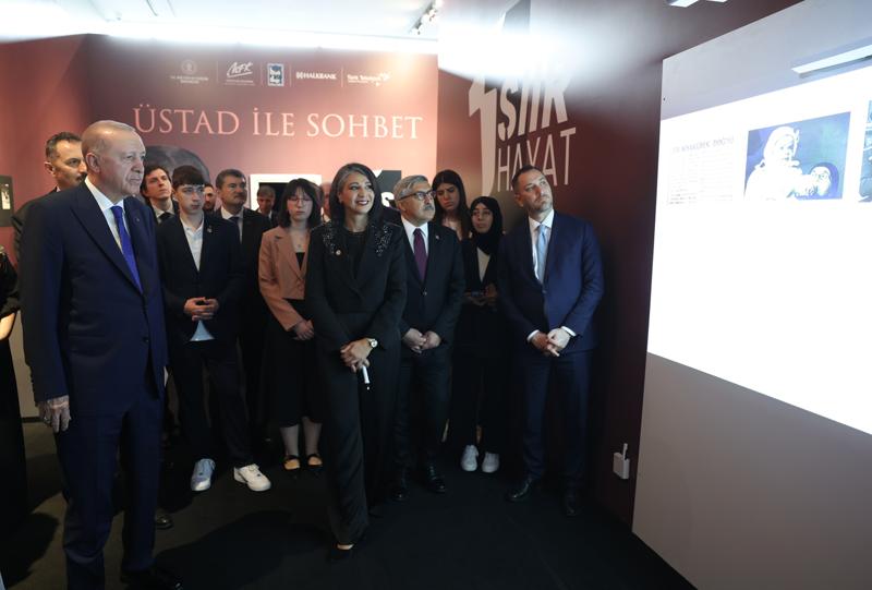 "Bir Şiir Bir Hayat Canım İstanbul" sergisini de gezen Erdoğan, ziyaretçilere yapay zeka destekli interaktif bir sistemle Necip Fazıl Kısakürek ile birebir sohbet etme imkanı sunan sistemi denedi.