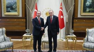 Cumhurbaşkanlığı Külliyesi'ndeki kabulde, Cumhurbaşkanı Yardımcısı Cevdet Yılmaz, KKTC'nin Ankara Büyükelçisi İsmet Korukoğlu, Türkiye'nin Lefkoşa Büyükelçisi Yasin Ekrem Serim ve Cumhurbaşkanı Dış Politika ve Güvenlik Başdanışmanı Akif Çağatay Kılıç da yer aldı.