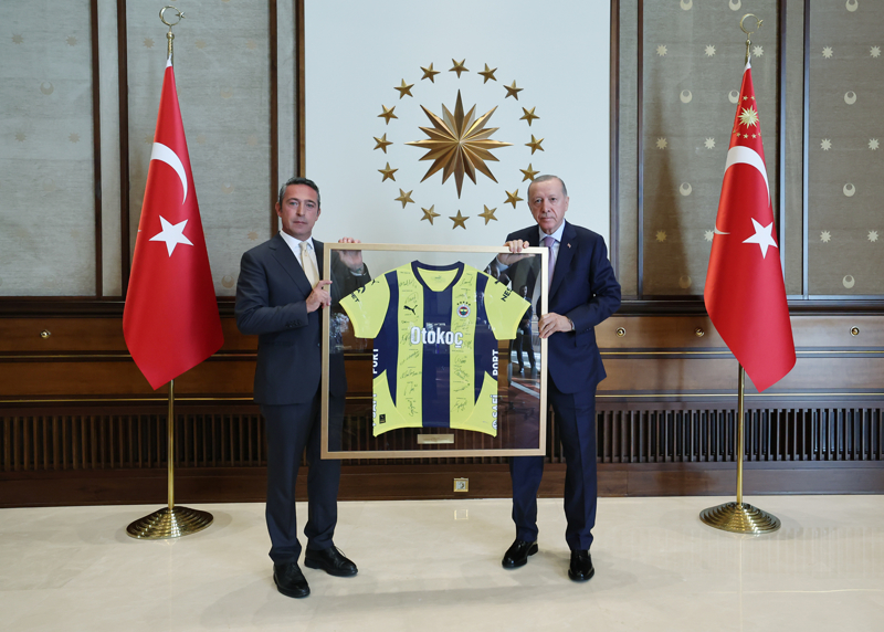 Erdoğan, Cumhurbaşkanlığı Külliyesi'nde Fenerbahçe Spor Kulübü Başkanı Ali Koç ve beraberindeki yönetim kurulu üyelerini kabul etti.