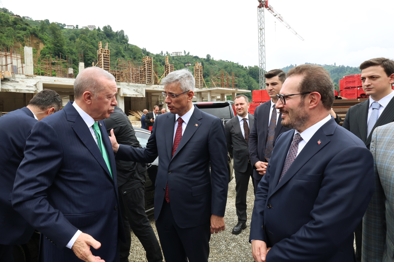 Cumhurbaşkanı Erdoğan, memleketi Rize'nin Güneysu ilçesinde yapımı devam eden Güneysu Devlet Hastanesi inşaatında incelemelerde bulundu.