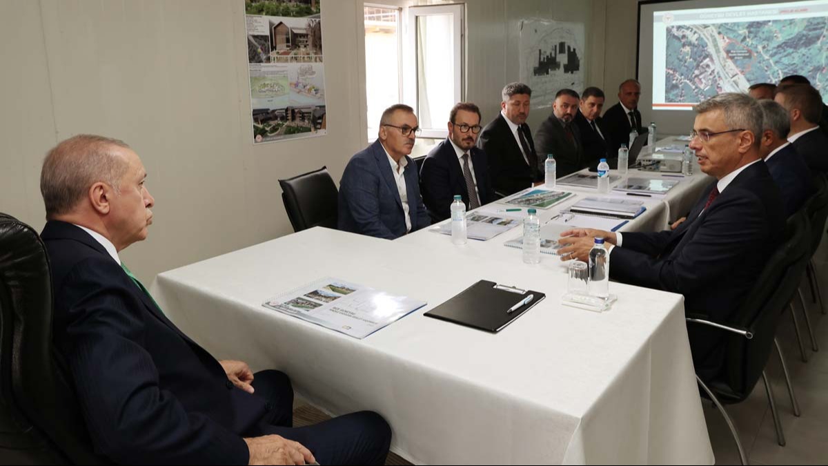 Cumhurbaşkanı Erdoğan, memleketi Rize'nin Güneysu ilçesinde yapımı devam eden Güneysu Devlet Hastanesi inşaatında incelemelerde bulundu.