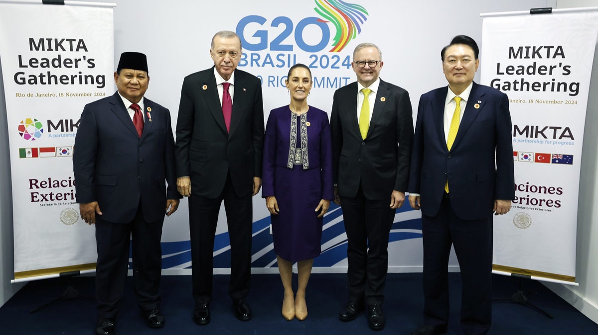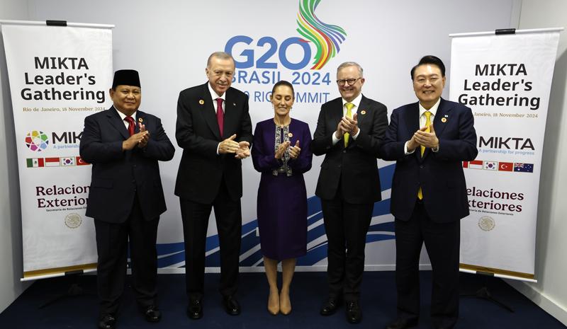 Cumhurbaşkanı Erdoğan, zirve kapsamında, Meksika, Endonezya, Güney Kore, Türkiye ve Avustralya arasındaki gayriresmi istişare ve eş güdüm platformu MIKTA'nın liderleriyle bir araya geldi.
