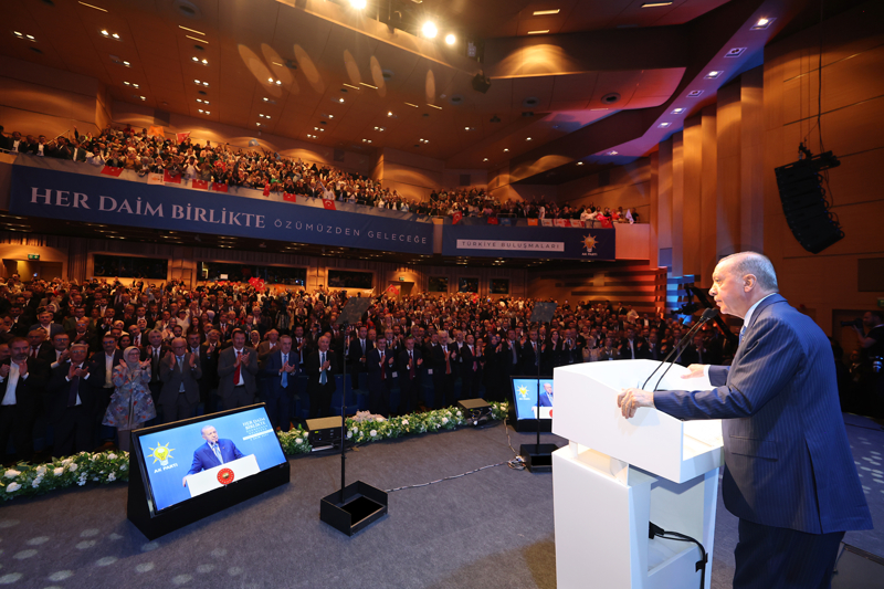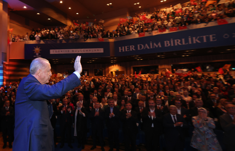 AK Parti olarak, üye sayısı itibarıyla Türkiye'nin en büyük ailesi olduklarını hatırlatan Erdoğan, "Biz çıkar birliği yapmış bir hareket değil, Türkiye'ye hizmet aşkıyla gönül birliği, kader birliği, yol ve dava arkadaşlığı yapmış bir siyasi partiyiz. AK Parti teşkilatlarını bir arada tutan harç, kardeşlik hukukudur. Biz birbirini ezerek yükselenlerden olmadık. Birbirinin elini tutarak, birbirine omuz vererek yükselenlerden olduk. Hep söylüyorum; makamlar, rütbeler, oturulan koltuklar değişebilir, molalar olabilir, kesintiler olabilir, dinlenmeye çekilenler olabilir ama uğruna ömrümüzü adadığımız AK Parti'nin temsilcisi olduğu kutlu dava inşallah ilelebet payidar olacaktır." diye konuştu.