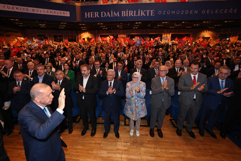 "İNSANIMIZ AK PARTİ'YE VE CUMHUR İTTİFAKI'NA GÜVENİYOR"Türkiye Buluşmaları'nın AK Parti'nin, milletin kalbindeki sarsılmaz yerini bir kez daha teyit ettiğini vurgulayan Erdoğan, şöyle konuştu: