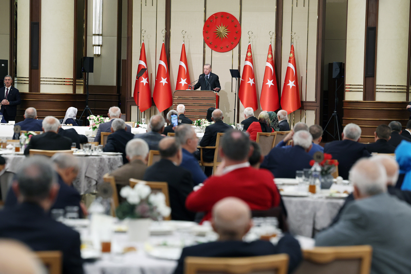 "Şartlar ne olursa olsun milletimize verdiğimiz sözleri tutmaya çalıştık. Bunun en yakın şahidi de, iktidarımızın 22 yılına bizzat tanıklık eden siz emeklilerimizsiniz. 31 Mart seçimleri, emeklilerimizin sıkıntılarının ve beklentilerinin en fazla istismar edildiği bir dönem olmuştur. Muhalefet seçim propagandasını, emeklilerimizi hükümetimize karşı kışkırtmak üzere kurgulamış, haftalarca bunun üzerine adeta tepinmiştir. Hiçbir ekonomik ve mali temeli olmayan uçuk vaatler üzerinden kelimenin tam anlamıyla vaat panayırları düzenlediler. Kim ne veriyorsa, bundan 5 fazlası mantığıyla Türk siyasetine popülizm hastalığını tekrar bulaştırdılar. Bundan ne yazık ki, belli oranda netice de aldılar. Biz seçim döneminde de emeklilerimizle ruberu konuştuk, gönül dileğiyle konuştuk.