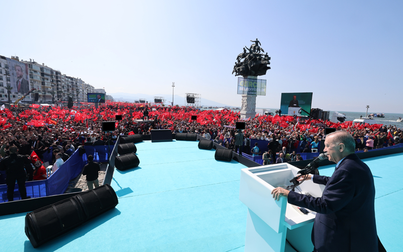 İzmir'e yapılan hizmetlere ilişkin videonun gösteriminin ardından Erdoğan, 31 Mart'tan sonra bu hizmetlere yerel yönetimlerle işbirliği içinde çok daha fazlasını ilave edeceklerini ifade etti.